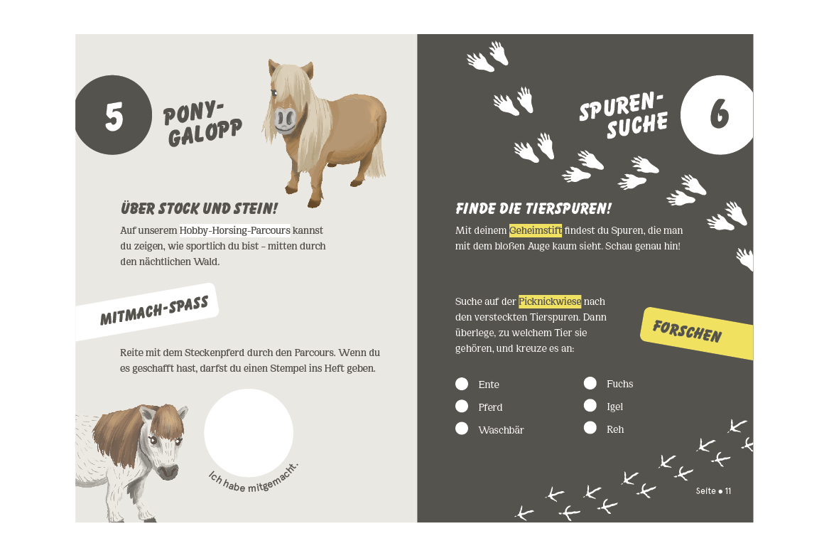 Für dieses neue Veranstaltungsformat entwickelte ich das visuelle Konzept der Aktion. Dazu zählen das Keyvisual, das Waldforscher-Heft, Forscherausweis, Werbemittel,  sowie Beschilderungen und Social-Media-Sujets.