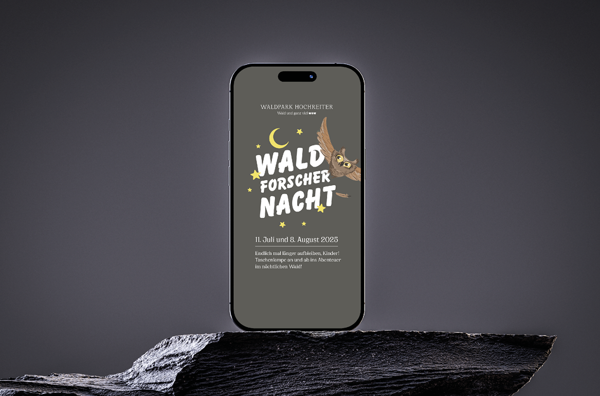 Die Waldforschernacht ist eine neue Veranstaltung im Waldpark Hochreiter, bei der Kinder den Wald in der Dämmerung und bei Nacht entdecken können. Ausgestattet mit Taschenlampe, Lupe und Forschergeist erleben sie an verschiedenen Stationen ein tierisches Abenteuer mit Rätseln, Suchspielen und kreativen Aufgaben – vom Taschenlampen-Bingo über das Erkennen von Tierstimmen bis zur Fuchs-Suche oder dem Hobby-Horsing-Parcours.